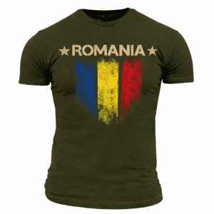 New! TRICOU ROMANIAN FIGHTER CU STEMA ROMANIEI / Marimi pana la 4XL / 100% Bumbac. Calitate excelenta.